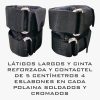 Fabricadas en neopreno de 3 mm de grosor 3 capas 1 poliéster, 1 poliéster afelpado y neopreno, rellenas de fino fierro molido, cintas de 5 cm ancho polipropileno alta calidad, hebillas de 5 mm soldadas y contactel 5 cm ancho.